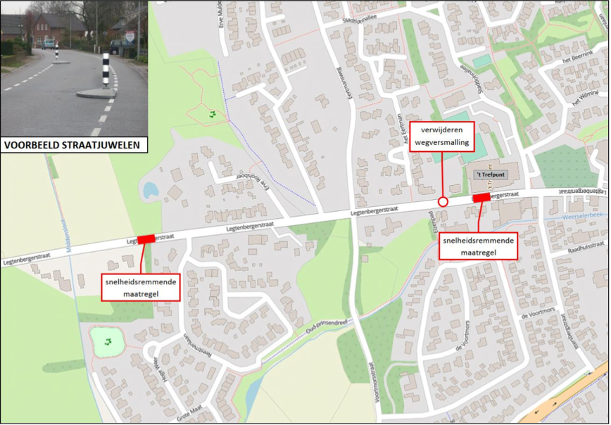 We passen op korte termijn een aantal dingen aan in de Legtenbergerstraat. De wegversmalling bij Bolk Assurantiën halen we weg. Deze zorgt niet meer voor het gewenste effect en past niet goed bij de inrichting van de straat.