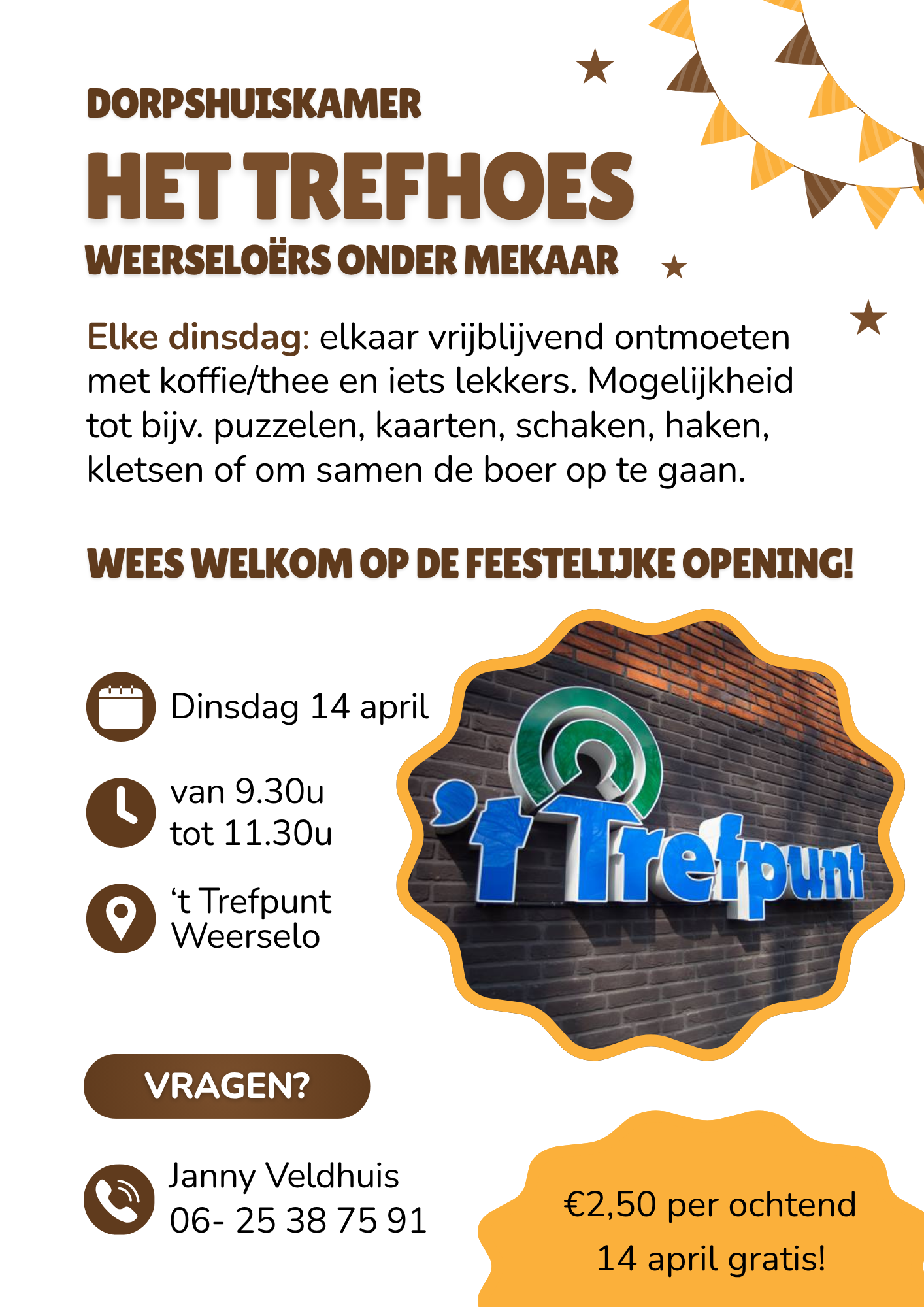 Vanaf 14 april is Het Trefhoes elke dinsdagochtend van 9.30 tot 11.30 uur geopend.